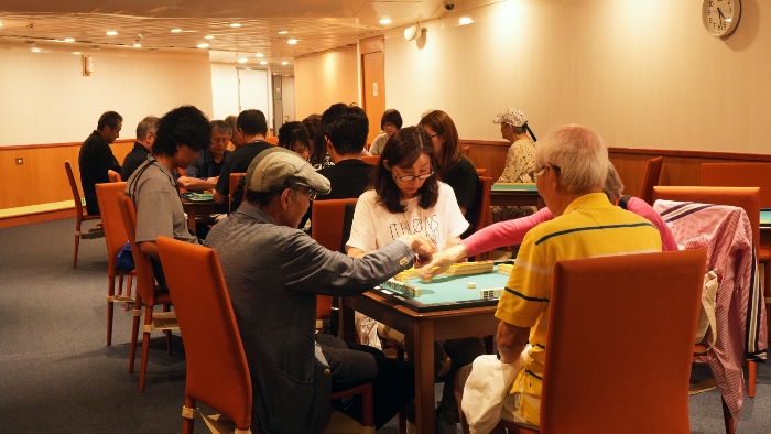 船内には、麻雀をはじめ将棋や囲碁、カードゲームなどを楽しむことができるゲームエリアがあります。居合わせた人と一緒にテーブルを囲み、気付けばここでお友だちができたという方もいらっしゃるなど、幅広い年齢層の方たちが一緒に楽しめる人気のエリア。この日も、真剣ながらも楽しそうな雰囲気でプレイする姿が見られました。