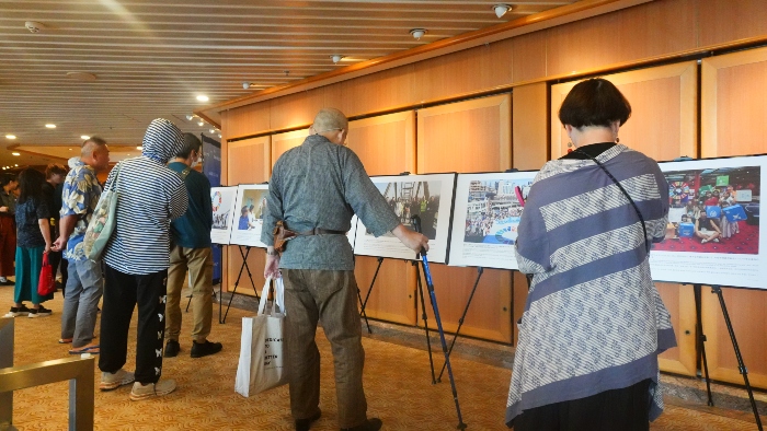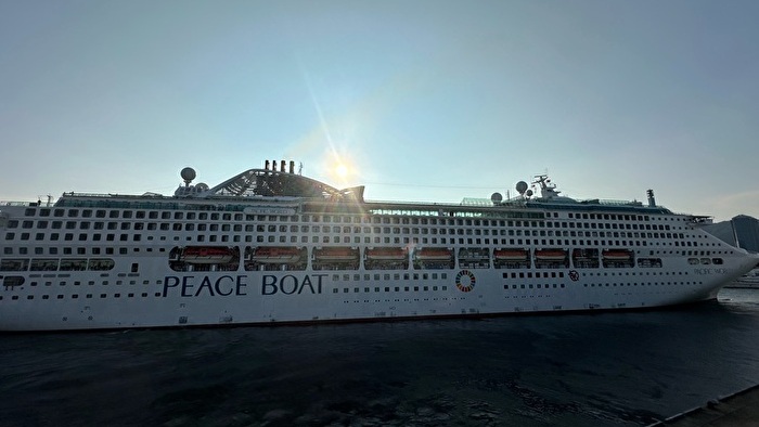 1983年9月2日に第1回クルーズが出航してから、ピースボートクルーズは今年で43年目を迎えました。この日は、その長い歩みをふり返る講座やパネル展示が船内で開催され、これまでに積み重ねてきた取り組みの数々が紹介されました。また、NGOピースボートが国際運営団体を務める核兵器廃絶国際キャンペーン(ICAN)が、2017年にノーベル平和賞を受賞した際に贈られた実物のメダルも展示。多くの方々にピースボートクルーズのあゆみを知っていただく機会となりました。