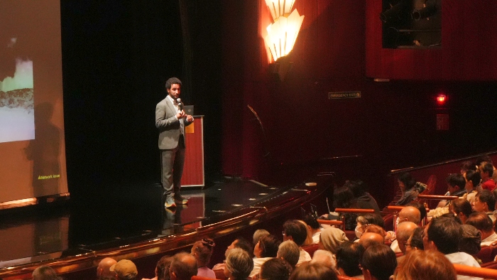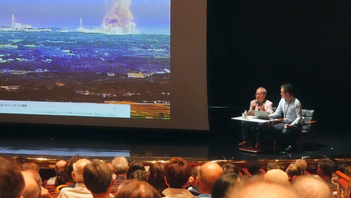 これまで数々の大型経済事件を担当し、逆転勝利へと導いてきた水先案内人で弁護士の河合弘之さん。ビジネス弁護士として活躍する一方、脱原発訴訟では徹底的に勝利にこだわり、その傍ら自然エネルギーを広める活動や映画製作も手掛けてきました。会場を埋めた方たちは、河合さんが語る自らの活動や日本の未来についてのお話に熱心に耳を傾けていました。
