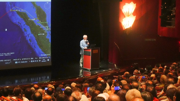 クルーズの航路や、航海にまつわるさまざまな知識をご紹介するシリーズ企画「航路と航海の雑学」。今回は、横浜出航以降の航路を振り返り、現在航行中のインド洋からケープタウンへと至るルートについての紹介です。どのような海域を通り、どのような針路が取られるのかーー普段なかなかふれることのない内容とあって、会場に集まった方はメモを取るなど熱心に耳を傾けていらっしゃいました。