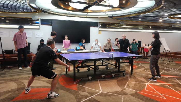 船内で人気の卓球。世代や国籍を問わず、日々多くの方が楽しんでいます。今日は卓球大会が開催され、抽選でペアを決めて試合がスタート。得点シーンや惜しいプレイの場面では周囲の観客の方から歓声が上がるなど、会場は盛り上がりを見せていました。