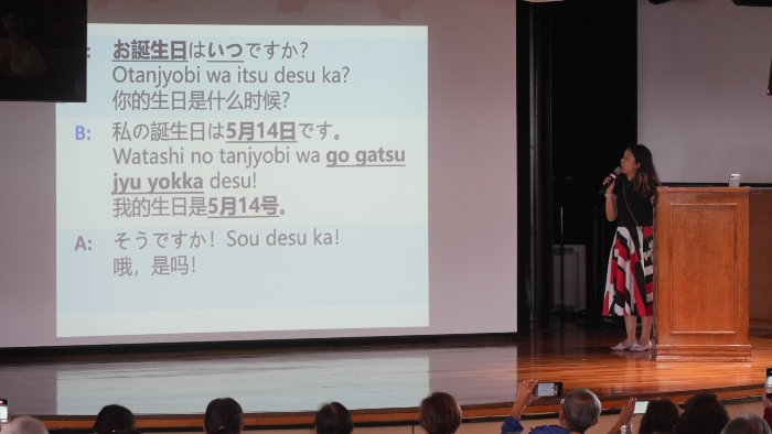 さまざまな国や地域から来られた方が乗船するピースボートクルーズ。船内では定期的に日本語教室が開催されており、数の数え方や簡単なあいさつ、文法や発音などを楽しく学んでいます。この日のレッスンでは、「お誕生日はいつですか?」など、お互いを知るきっかけになるようなフレーズを練習しました。旅がはじまって間もなく1か月。少しずつお友だちの輪が広がる船内では、言語の壁を越えて会話を楽しむ姿も見られるようになってきました。