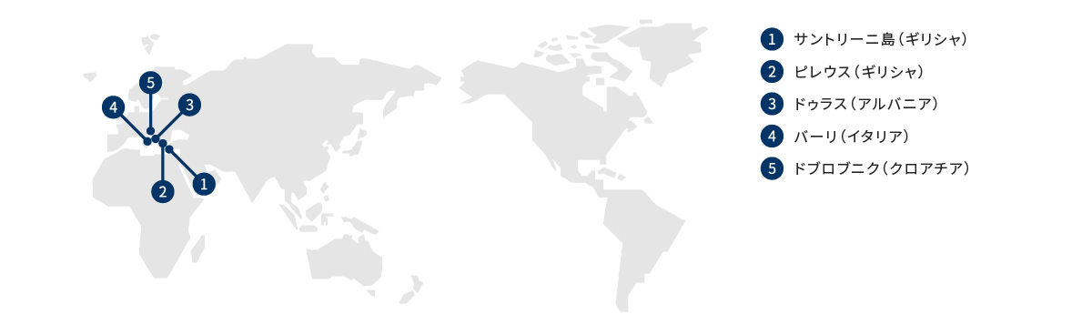 エーゲ海周辺の先史時代の遺跡の中でも、最も保存状態がよいといわれるアクロティリ遺跡。美しいフレスコ画や陶器が数多く出土し、神秘的な雰囲気が漂う古代遺跡からは、古代ギリシャに花開いた文明の栄華とロマンが感じられます。かの哲学者プラトンがこの古代遺跡を前に、一夜にして海に沈んだ大陸アトランティスについて書き記したことにも納得です。また、地中海性気候に恵まれたサントリーニ島は、ワインの産地としても人気です。絶景を望むワイナリー訪問にも期待が高まります。