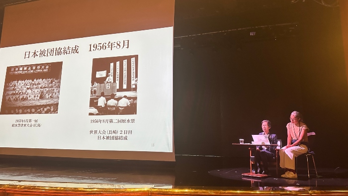 2024年にノーベル平和賞を受賞した日本被団協(日本原水爆被害者団体協議会)。本日の水先案内人講座には、日本被団協で事務局長を務める和田征子さんにご登壇いただき、核廃絶にかける想いと、その活動について語っていただきました。設立の経緯や70年にも及ぶ歩みもお話しいただき、会場に集まった皆さんは、和田さんの想いがこもった言葉に熱心に耳を傾けていらっしゃいました。
