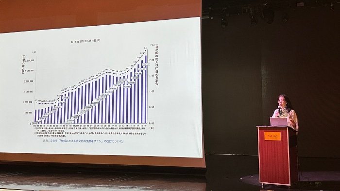 水先案内人としてご乗船いただいている、早稲田大学国際学術院教授の陳天璽さん。日中国交正常化と日華断交に翻弄され、生後間もなく無国籍となったバックボーンをもつなど、これまで移民や無国籍者に注目した研究を続けてこられました。この日の講座では、私たちの社会を構成する人びとが、以前と比べていかに多様化しているかを、グラフや統計を用いて明示し、社会から“少数者”と呼ばれる方たちがもっと認知されるためにできることなどを語ってくださいました。