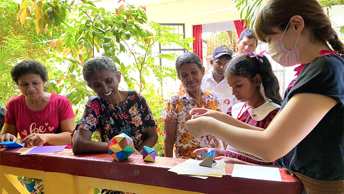 スリランカ最大の都市、コロンボへ入港しました。さっそく、現地の子どもたちと交流する、ピースボートクルーズならではのオプショナルツアーへ。習字や折り紙など日本の文化を紹介したり、身振り手振りでコミュニケーションを取ったり。すてきな旅の思い出が増えました。