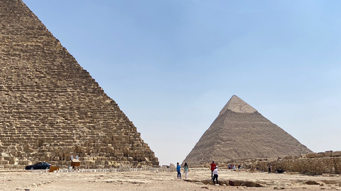 スエズ運河を抜け、エジプトのポートサイドへ入港しました。エジプトと言えば、やっぱりピラミッド!遠くからでも存在感を放つギザの三大ピラミッドは、そばまで行くと、ひとつひとつの石の大きさに圧倒されます。「一生に一度は見てみたい」ピラミッドを間近で見ることができて、大満足の1日となりました。