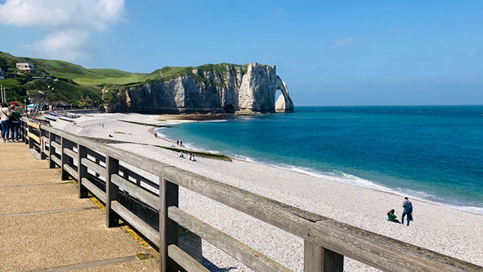 フランスのノルマンディー地方最大の港町、ル・アーブルは印象派絵画の発祥の地であり、現在でも街中でさまざまな芸術に触れることができます。オプショナルツアーでは少し足を延ばして、景勝地エトルタへ。多くの印象派の画家たちが描いた「アヴァルの断崖」をはじめ、美しい風景を見ることができました。