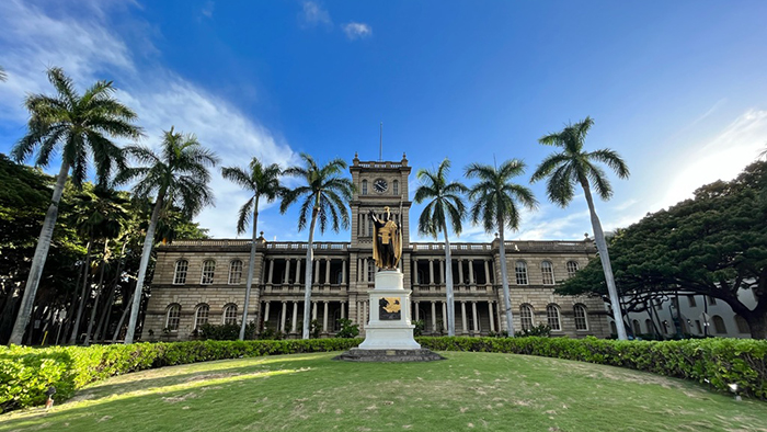 いよいよ今クルーズ最後の寄港地、ホノルルに入港しました。青い空の下、イオラニ宮殿の向かいに立つカメハメハ大王像の姿を見ると、ホノルルに来たことを実感します。ビーチで遊んだり、ショッピングやグルメを楽しんだりと、ホノルルでやりたいことは盛りだくさん!船内でできた友人たちと、たくさんの思い出を作りに街へ繰り出します。