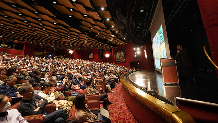 現役の医師であり作家の海堂尊さんの講座では、Aiが拓く医学の進歩や社会の未来についてお話いただきました。今回も会場は満席。海堂さんの人気はもちろんのこと、今後の医療に対する関心の高さがうかがえました。