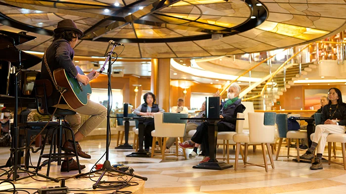 気の向くままにイベントや水先案内人の講座に参加したり、専属ミュージシャンによる生演奏を楽しんだりと、洋上では自分だけの自由な時間を過ごすことができます。