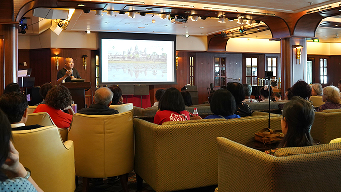 世界一周クルーズの醍醐味のひとつでもある、数々の世界遺産訪問。その世界遺産が誕生した過程と、「文化遺産・自然遺産・複合遺産」の3種類の違いなど、水先案内人のタン・ホァイユさんにお話いただきました。