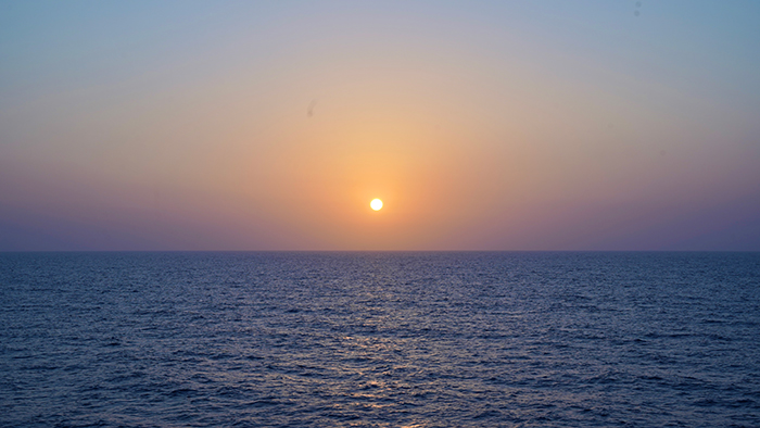 360度を大海原に囲まれた船の上では、地上ではなかなか見ることのできない風景の数々に出会うことも。ゆっくりと時間をかけて海に沈む夕日は、吸いこまれてしまいそうなほどに神秘的です。