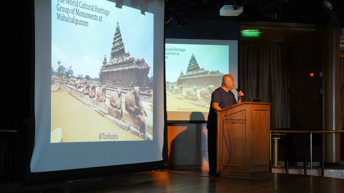 インドの世界遺産やインド文明についてお話いただいたのは、水先案内人のタン・ホァイユさん。インド文明が東アジア・南アジアの国々にもたらしたさまざまな影響についてご紹介いただきました。