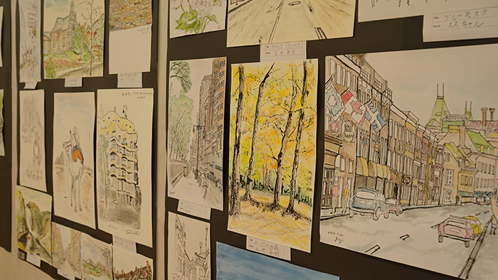 洋上カルチャースクール「葦ペン画教室」の作品展示会が行われました。寄港地や船内での風景など思い思いの作品が並び、葦ペンならではの独特なタッチで描かれた作品の数々に、多くの方が見入っていました。