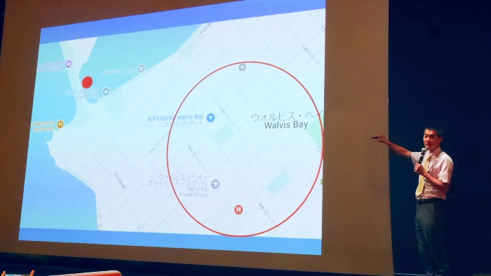 次に寄港するウォルビスベイの観光スポットやおすすめのお土産を紹介する企画が行われました。世界最古の砂漠であるナミブ砂漠や、カラフルな街並みが魅力のスワコプムンドなど、さまざまな見どころがあるウォルビスベイ。寄港が楽しみです。
