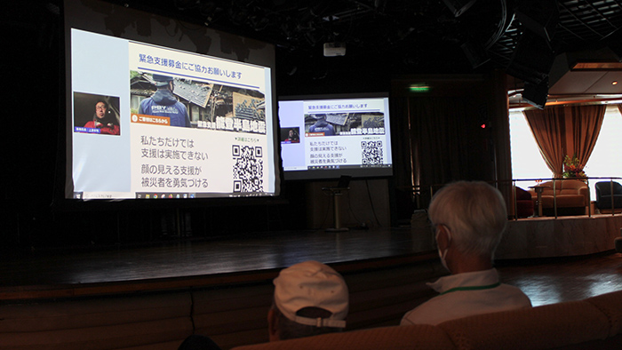 1月1日に石川県能登半島で発生した地震の支援活動を行っている「一般社団法人ピースボート災害支援センター(PBV)」のオンライン報告会によって、物資配布や炊き出しなど現地の様子が届き、洋上でも募金活動がはじまりました。