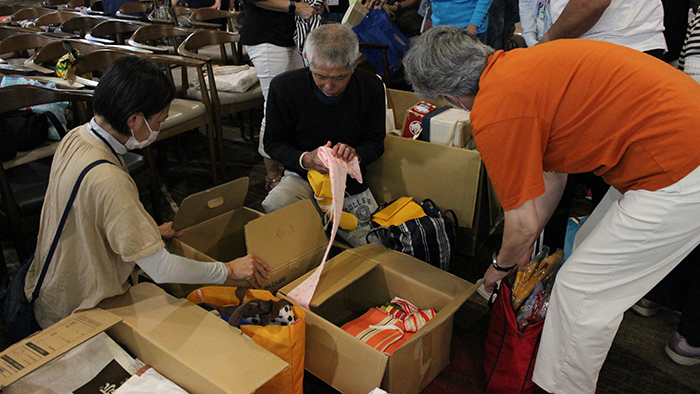 ピースボートクルーズでは、たくさんの物を運べるという大型客船の特性を活かし、世界各地のニーズに合わせ支援物資を届けています。ペルー寄港前の船内では、支援物資の仕分けと整理が行われました。楽器や文房具、服、スポーツ用品、裁縫用具など、届ける物資は多岐にわたります。