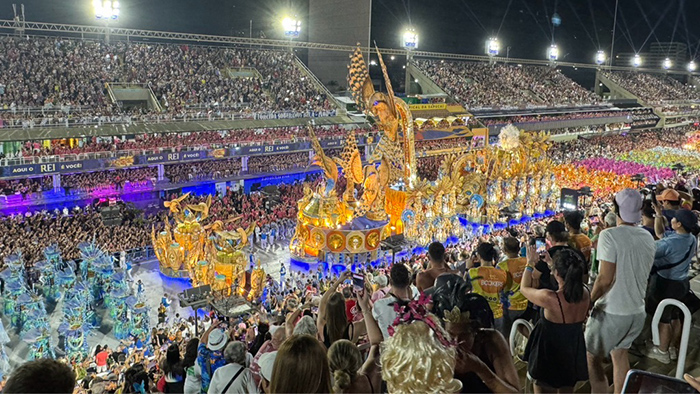 パシフィック・ワールド号が寄港したリオデジャネイロは、世界最大級の祭典「リオのカーニバル」開催中!さっそくカーニバル会場へ。何万人もの観客が見守る中、「エスコーラ」と呼ばれるパレード隊の登場です。デザインから建設まで、一年かけて準備されるという豪華絢爛な山車とダンサーやミュージシャンによる華麗なパフォーマンスは、圧巻!登場するダイナミックな山車の数々に、観客席も大賑わいです。