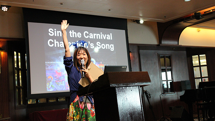 世界最大級の祭典「リオのカーニバル」で今年優勝したチームの曲を一緒に歌おう、そんな企画が行われました。現地でカーニバルを観覧した方も多く参加し、楽しいひとときとなりました。