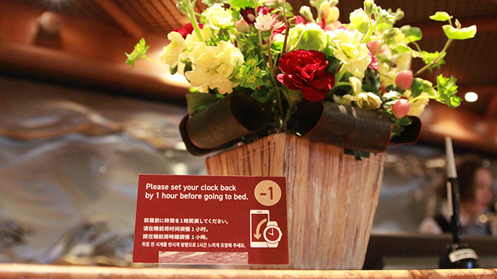 初めての時差調整日。船旅では次の寄港地との時差調整を、到着までの日数に合わせて少しづつ行うため、体に負担がないのが特徴です。西回り航路の今クルーズは、24時なると1時間戻すため「時差の日はなんだか得をした気分になる」という方も。
