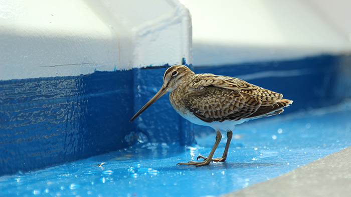 ゆっくりと心行くまで海や空を眺めることができるのも、船旅ならではの時間です。デッキでのんびり過ごしていると、小さな鳥も同じようにひと休みをしていました。