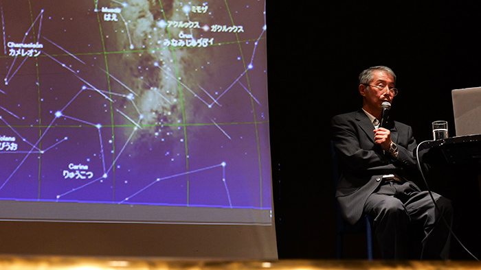 星槎大学の客員研究員、学芸員として、天文クラブを主宰する鳫宏道さんに、今クルーズで見ることができる星などについてお話いただきました。星空を眺めるのを日々の楽しみにしている方も多く、たくさんの方が講座に参加しました。 旅をより有意義なものへナビゲート [水先案内人紹介]鳫宏道さん