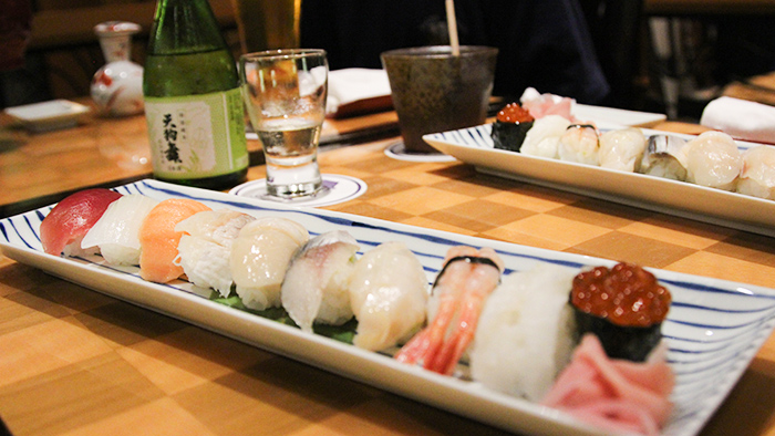 世界一周クルーズでは、訪れる寄港地で、その土地ならではの食事を楽しむことができます。寄港を楽しんで船に戻ってきたら「日本食が食べたい!」という方も。そんな時は、握り寿司や刺身などをご提供するすし処海-KAI-へ。今日もお寿司とともにお話を楽しむにぎやかな声が聞こえてきます。