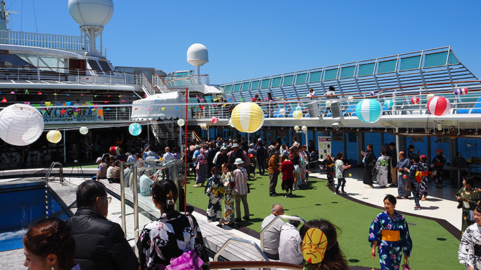 夏祭りが開催されました。ダンスや太鼓、バンドのパフォーマンス、定番の盆踊りをはじめ、ヨーヨー釣りや輪投げなどの縁日ブースもにぎわっていました。14階のテラスグリルでは夏祭りメニューやドリンクも販売され、見て食べて夏を楽しんだ時間となりました。