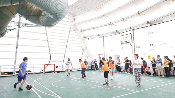 最上階の15階にあるスポーツコートで、バスケットボール大会が開催され、バスケ好きやスポーツ好きの皆さんが集まりました。海の風を感じながら身体を動かす、爽やかなひとときとなりました。