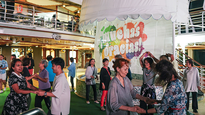 ラテン音楽を楽しむ「ラテンフィエスタ」が行われました。サルサのステップのレッスンのあとは、音楽に合わせて踊ったり、ドリンクを購入して乾杯したりと、会場はとっても賑やか!楽しいひとときとなりました。