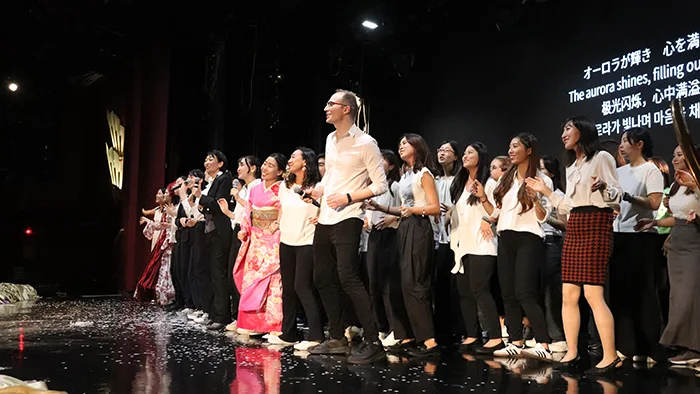 ご乗船いただいたみなさまへの感謝を込めて、クルーズスタッフによるエンターテインメントショーが開催されました。ダンスや合唱など多彩な演目が披露され、特別なひとときをお楽しみいただきました。