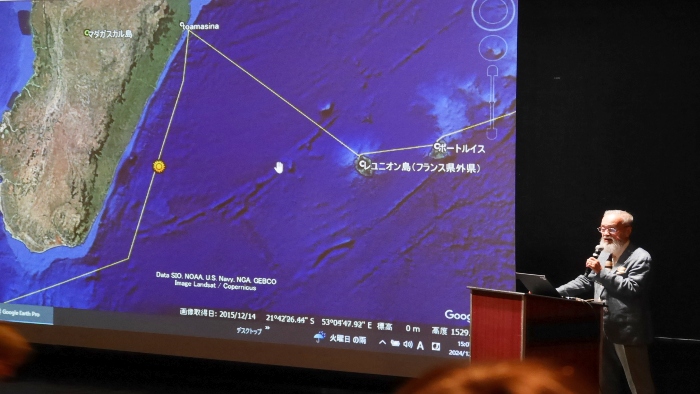 船旅にまつわる雑学や、これからの航路などを紹介するシリーズ企画「航海の雑学」。今回はインド洋編として、出航からケープタウンまでの航路や見どころが紹介されました。参加した方々は時折メモを取りながら熱心に聞き入っていました。