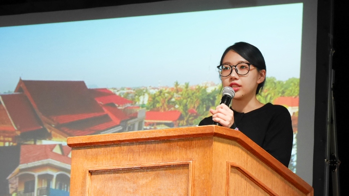 ピースボートクルーズでは、訪れた寄港地で社会問題や歴史などを学び考えるオプショナルツアーを実施しています。今回はシンガポールで一時下船し、空路でカンボジアを訪問。内線終結から30年経った今も続く、地雷問題について学ぶツアーに参加したメンバーによる報告会が行われました。ツアーでは、5日間をかけて地雷被害者を支援する団体を訪問し、地雷除去に関わる人びとから直接お話を伺いました。報告会では、参加メンバーたちが現地で学んだことや感じたことを、それぞれの言葉で報告しました。