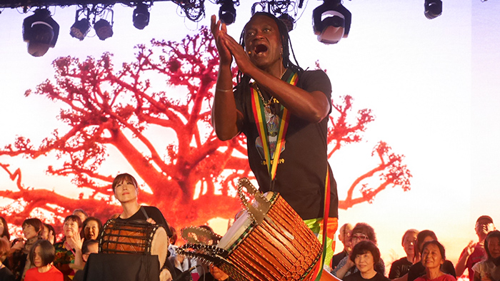 能とジャンベのワークショップ発表会