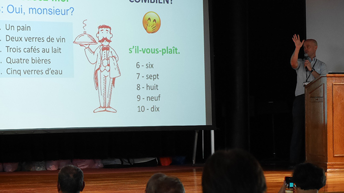 洋上で語学を学ぶプログラム「GET(Global English Training)」では有料クラスに加え、無料で参加できるクラスも用意されています。今回は特別に、次に寄港するマダガスカルの公用語であるフランス語のレッスンが行われました。参加者からは「寄港前に現地の言葉を学べる時間があるのはうれしい」との声も聞かれました。