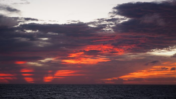 デッキに出てみると、美しい夕焼け空が待っていました。息をのむような景色にしばし言葉を失います。地球が創り出す素晴らしい景色は、どれだけ見ていても飽きることはありません。