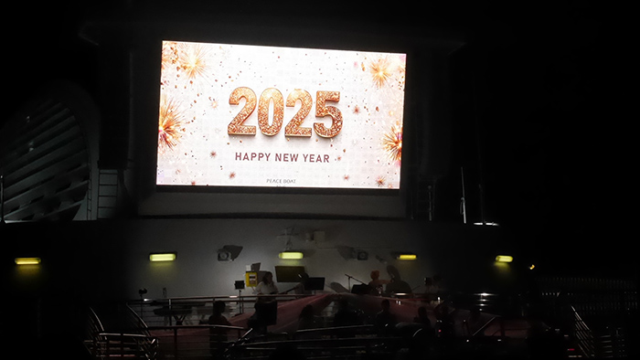トアマシナで迎えた2024年最後の日。夜のデッキには多くの人びとが集まりました。2025年を迎えると新しい幕開けを祝うかのように、あちらこちらから大きな拍手と歓声が沸き起こりました。