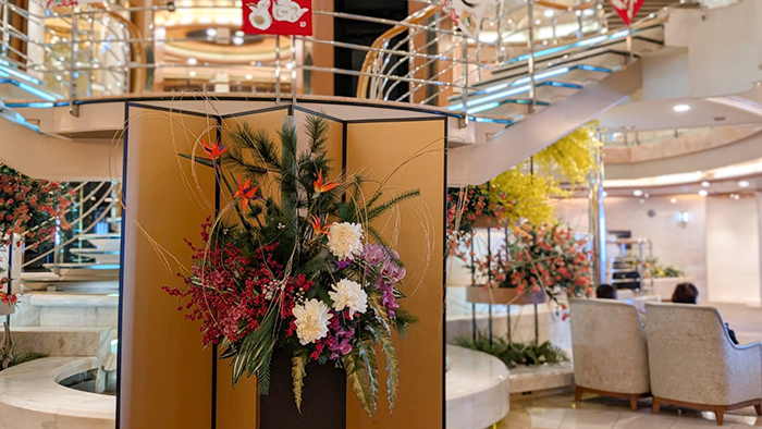 新年を迎え、美しい正月飾りが施された船内は、華やかで賑わいに満ちています。パシフィック・ワールド号はトアマシナに寄港中です。この島ならではの景色を味わい、楽しいひとときを過ごしました。