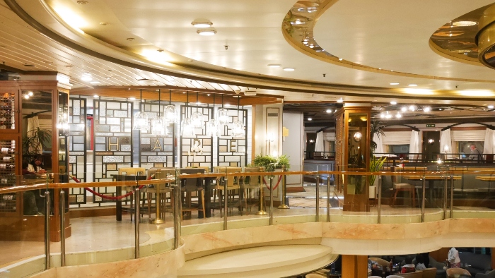 開放的な4層吹き抜けのアトリウムは、多くの人びとが行き交いとても賑やかな空間です。周囲にはカフェやバーがあり、専属ミュージシャンの演奏を楽しめるひとときも。船旅ならではのゆったりとした時間を過ごせる場所です。