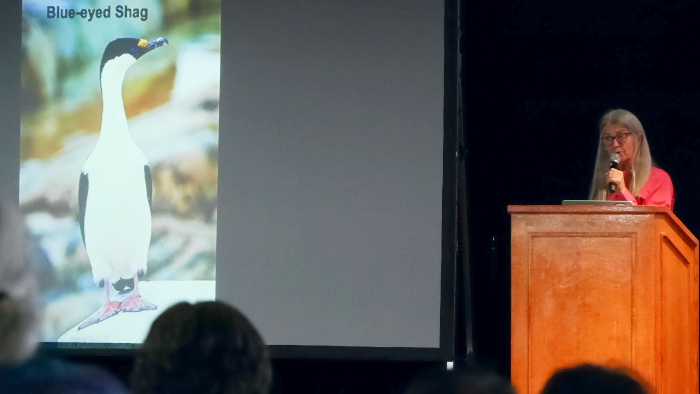 多くの人が楽しみにしている南極遊覧の日が近づいてきました。船内では、南極旅行の安全や大自然への影響を考慮してツアーの計画などを行う南極エクスペディションリーダーのスーザン・エイディさんによる講座が何度か行われ、基本情報や南極に生きる動物たちについてお話いただきました。