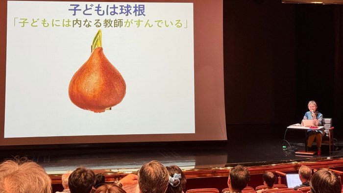 国際モンテッソーリ協会公認教師であり、ピースボート洋上保育園「子どもの家」アドバイザーを務める深津高子さんが行ったのが、「地球の新入社員としての子ども」と題されたユニークな講座。幼児の一日を描いた映像を観ながら、会社で新入社員を研修するように、大人たちは子どもが地球で生きるための“ノウハウ”をどのように伝えるべきか――そのヒントを探る興味深いお話を、じっくりと聞かせてくださいました。