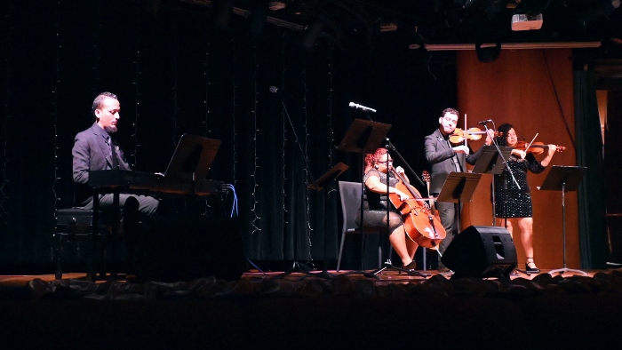 クルーズを彩る美しい音楽。日頃は船内各所で演奏を披露しているミュージシャンたちが、今夜はステージに勢揃いし、特別な演奏会を開催しました。しっとりと美しい音色が会場を包み、集まったお客様も、優雅な雰囲気に身をゆだねているご様子でした。