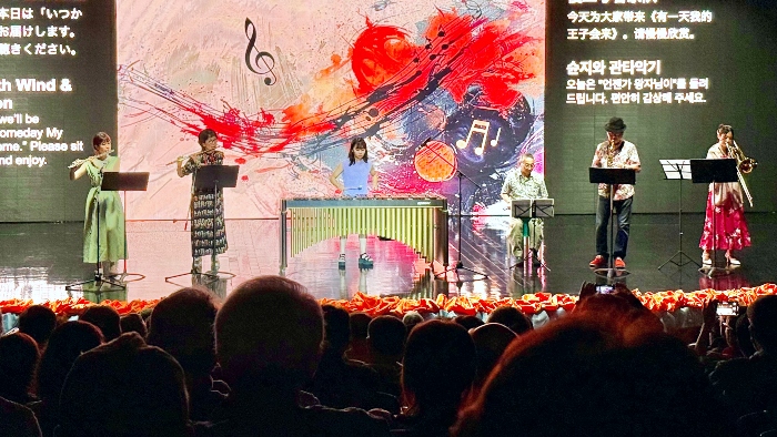 乗船された方自身が企画者となり、趣味や特技を活かして行う「自主企画」。今日はそれぞれの自主企画の参加者の皆さんが一同に会し、発表会が行われました。歌やダンス、楽器の演奏などこれまでの練習の成果が披露され、会場はあたたかな拍手に包まれました。