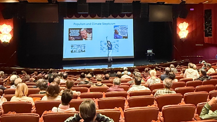 2008年から2016年までドイツ環境評議会の委員を務め、環境保護活動や環境政策、気候政策の策定について国際比較の観点から研究を続ける、水先案内人のミランダ・シュラーズさん。この日の講座では、昨今の米国やヨーロッパの政治状況をふまえながら、それらの政治が気候変動政策にどのような影響を与えているかについてお話しいただきました。