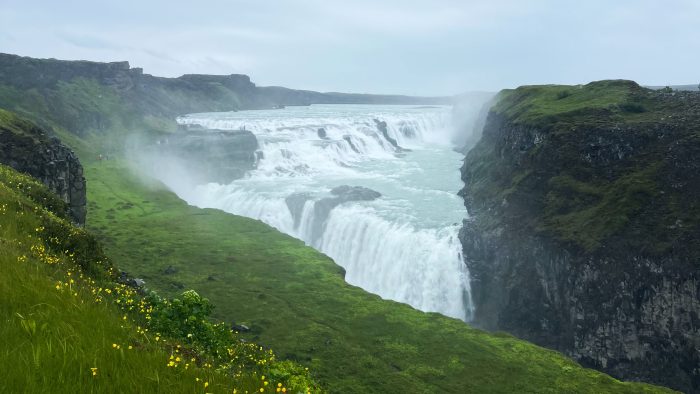 寄港したレイキャビクから郊外へ。「ゴールデンサークル」と呼ばれる、滝や間欠泉などが点在するエリアを訪れました。溶岩層の上を毎秒平均140トンもの水が流れるグトルフォスの滝は、圧巻の光景。轟音を響かせ、水煙を上げながら流れ落ちるさまは、“生きている地球”を存分に感じさせてくれました。