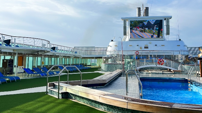 外の空気にふれたくなってデッキへと上がると、大空と波音が全身を包みました。クルーズが始まって2ヶ月超。すっかり見慣れた光景ですが、やはり何度見ても特別なものに感じます。こんな瞬間もいつか旅の思い出になると思うと、いつまでもこの美しい海や空を眺めていたくなります。