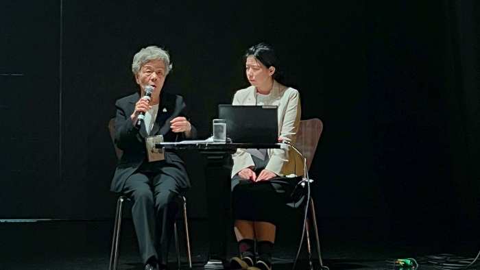 戦後80年特別プロジェクト「TIME FOR PEACE」の大きな柱となっているのが、日本被団協の後援のもと世界各地に被爆証言を届ける「おりづるプロジェクト」です。お話しをしてくださった渡辺淳子さんは、2歳のときに広島で被爆しました。成人後に自身が被爆者であることを知った渡辺さんは、「活動を始めてから知った多くのヒバクシャの声が自分の原動力になっています」と語ります。ご自身の被爆証言と合わせて、渡辺さんの未来へとつなぐ想いをお話しいただきました。