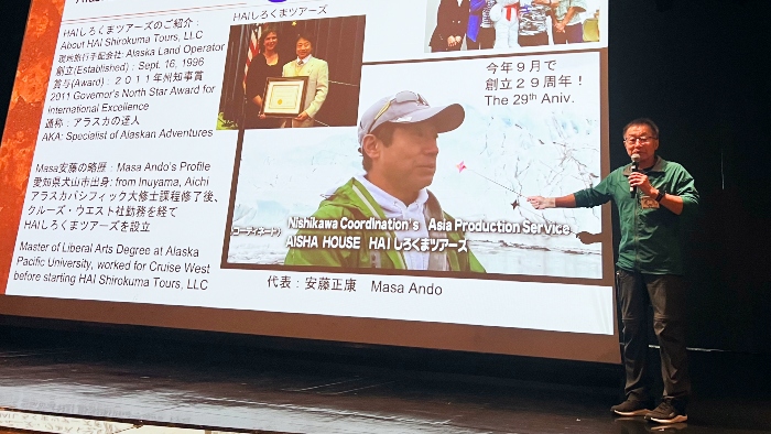 バンクーバーを出港した船は、まもなくアラスカの地へ。期待が高まるアラスカフィヨルド遊覧を前に、アラスカ在住で現地で旅行会社を主催する、水先案内人の安藤正康さんの講座が開催されました。クルーズのハイライトであるアラスカフィヨルド遊覧とあって、楽しみにされていた方も多く会場は満員に。フィヨルドの見どころや、奥深いアラスカの文化など、たっぷりとお話しいただきました。 旅をより有意義なものへナビゲート [水先案内人紹介]安藤正康さん 安藤正康さんのインタビュー記事はこちら [クルーズコレクション]素晴らしきアラスカ