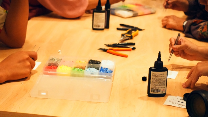 NGOピースボートが設立40周年を機に立ち上げた『Ocean Upcycleプロジェクト』。これは、近年問題となっている海洋汚染、とりわけ海洋プラスチックの問題に着目し、世界の海でビーチクリーンなどを実施しながら、美しい海や、海の豊かさを守ろうというプロジェクトです。「アップサイクル(Upcycle)」とは、「捨てられてしまうモノに手を加えて、新たな価値を生み出す」という意味。この日は実際に海で回収されたプラスチックごみ使って、工芸品を作るワークショップが開かれました。参加された皆さんは、細かく破砕されたプラスチック素材から、世界にひとつだけのオリジナルの作品を生み出していました。